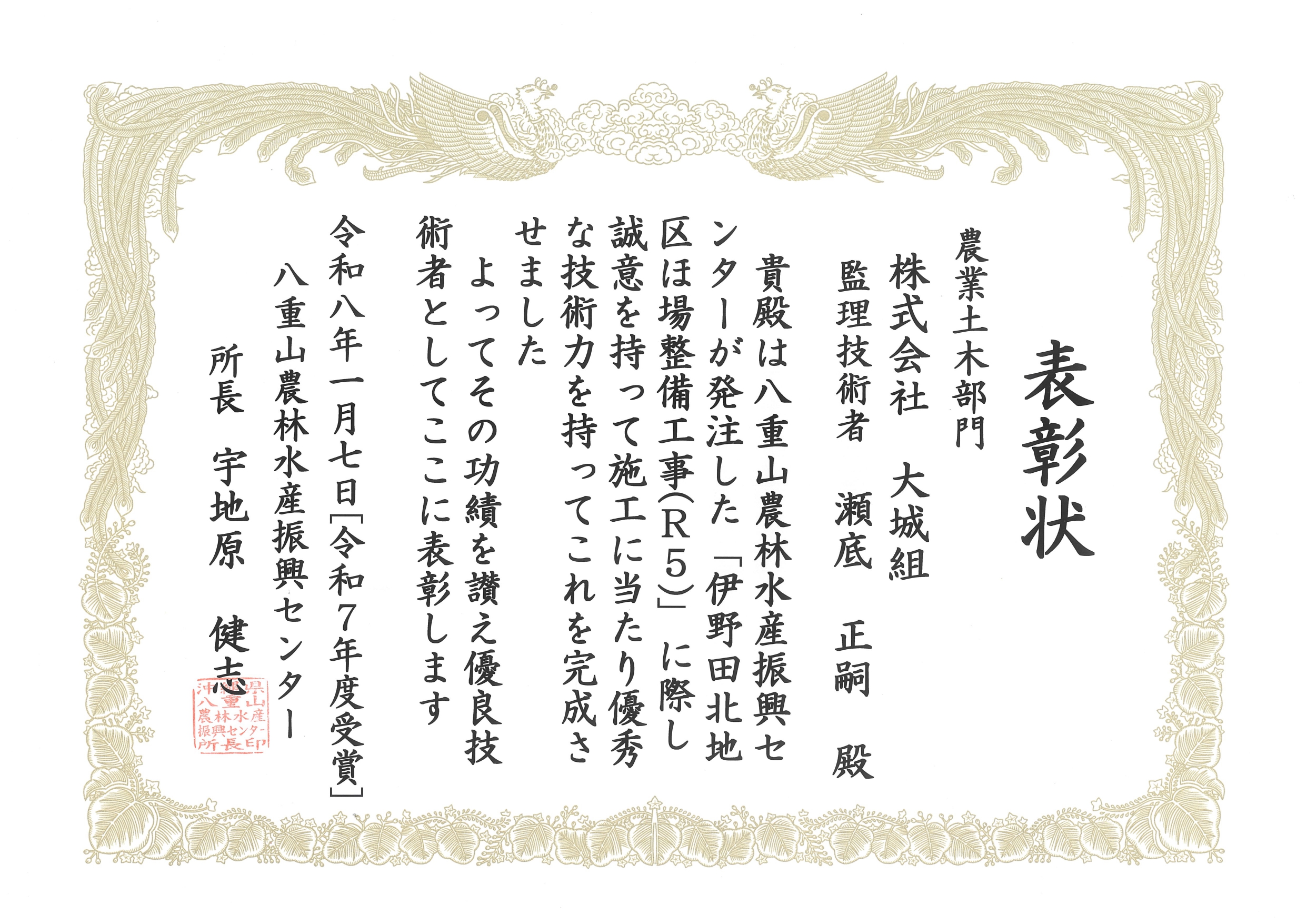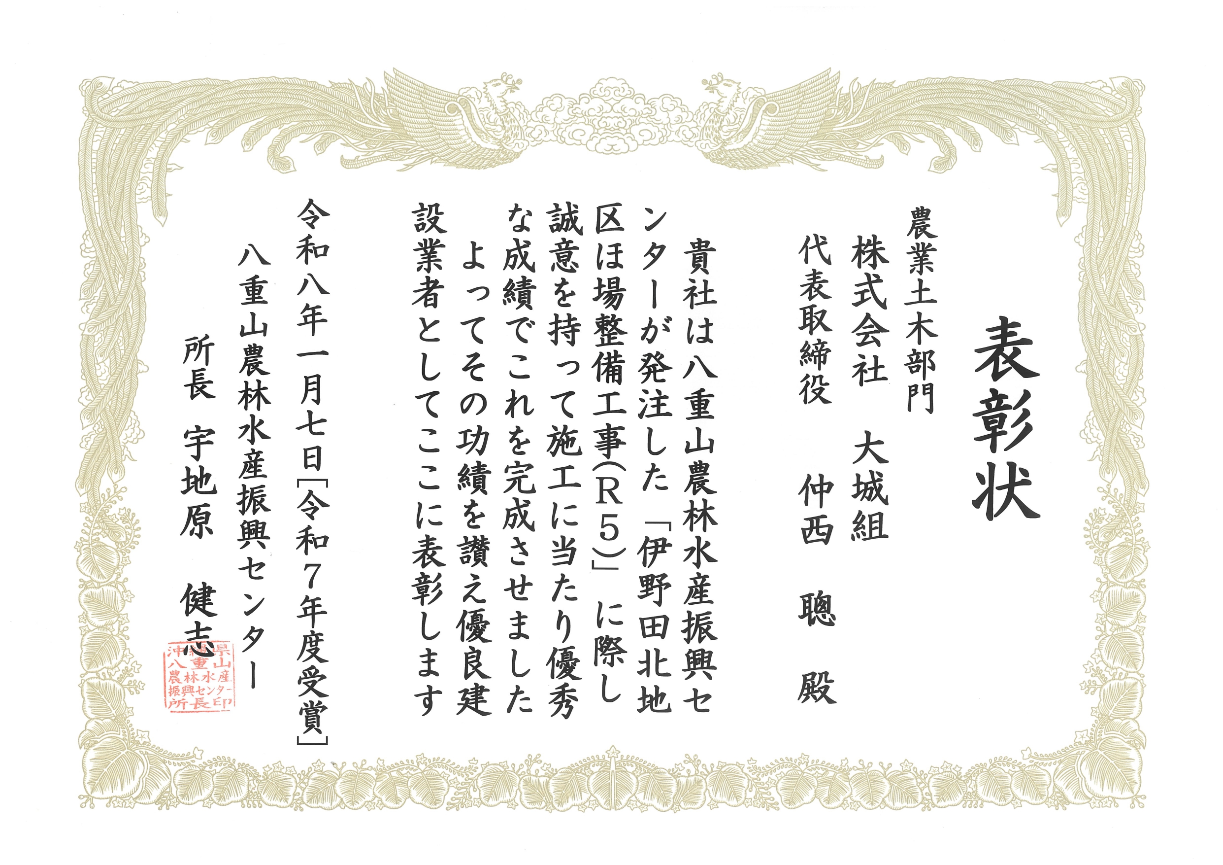 令和7年度 優秀建設業者等表彰