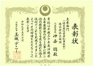 令和元年度 沖縄県土木建築部優良建設業者表彰が